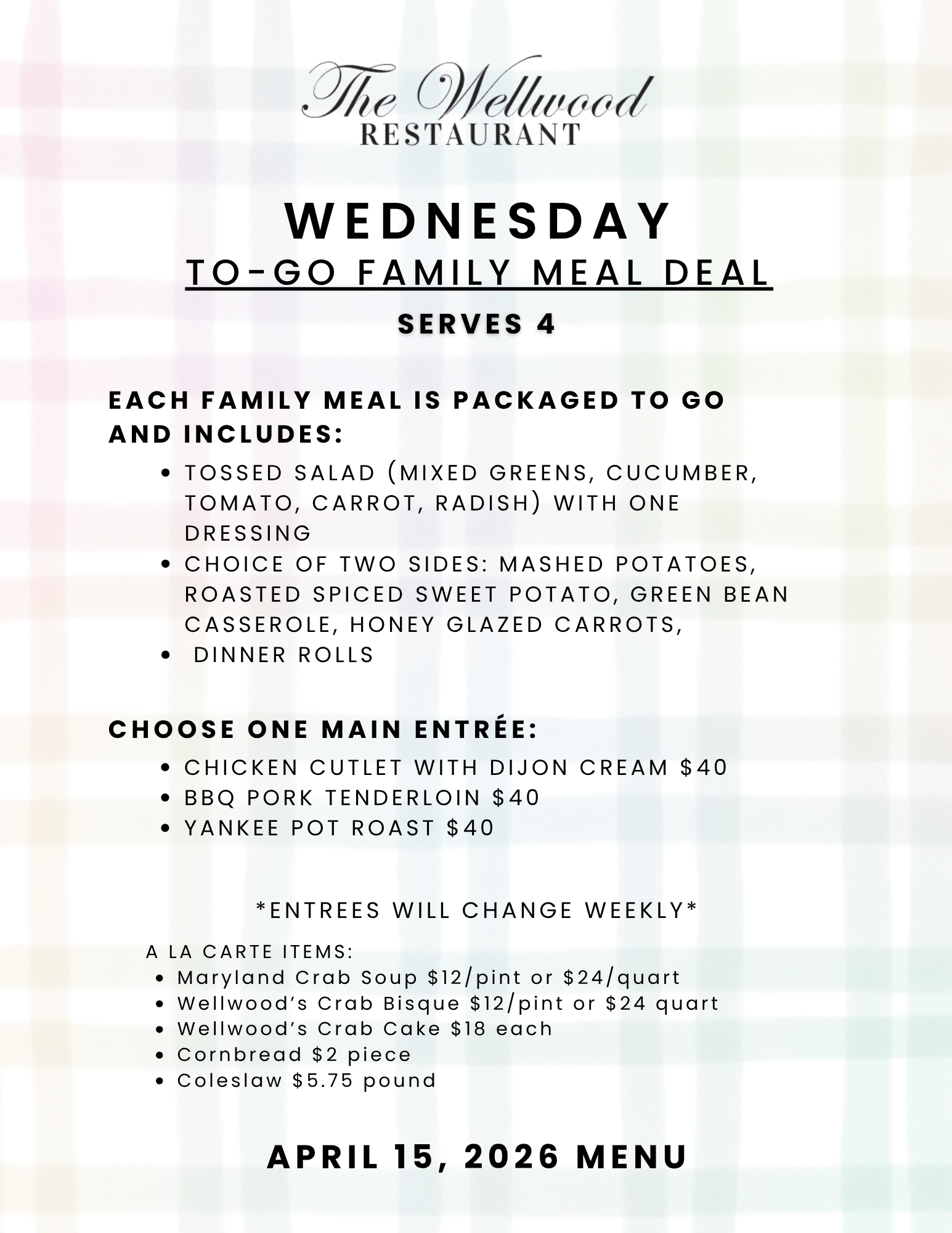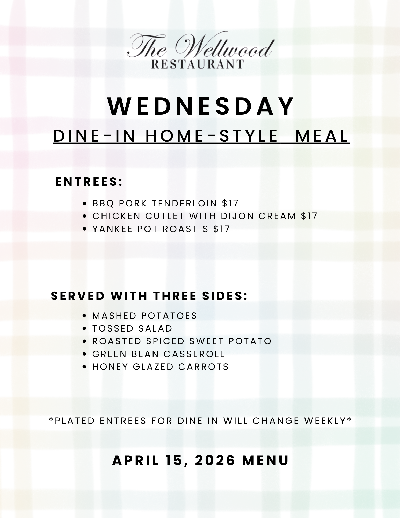 April Wednesday Homestyle Meals