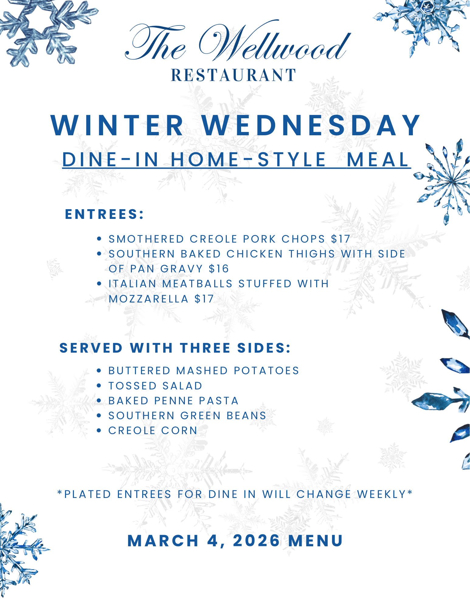 Winter Wednesday Dine-IN or To Go Home-Style Meals